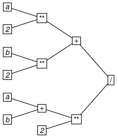 To illustrate the use of the eTree and eLeaf elements, here is an encoding of the second example in section 19.2 Trees, repeated here for convenience.